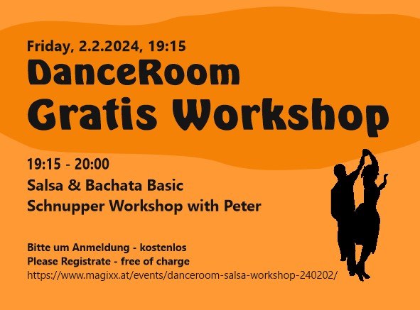Salsa Bachata Workshop gratis 20240202 Veröffentlicht 23. Januar 2024 bei 591 × 437 in DanceRoom Gratis Workshop Salsa & Bachata 2.2.2024 – 19:15 – ausgebucht Teilen: Click to email a link to a friend (Opens in new window) E-Mail Click to share on Facebook (Opens in new window) Facebook Click to share on X (Opens in new window) X ← Zurück