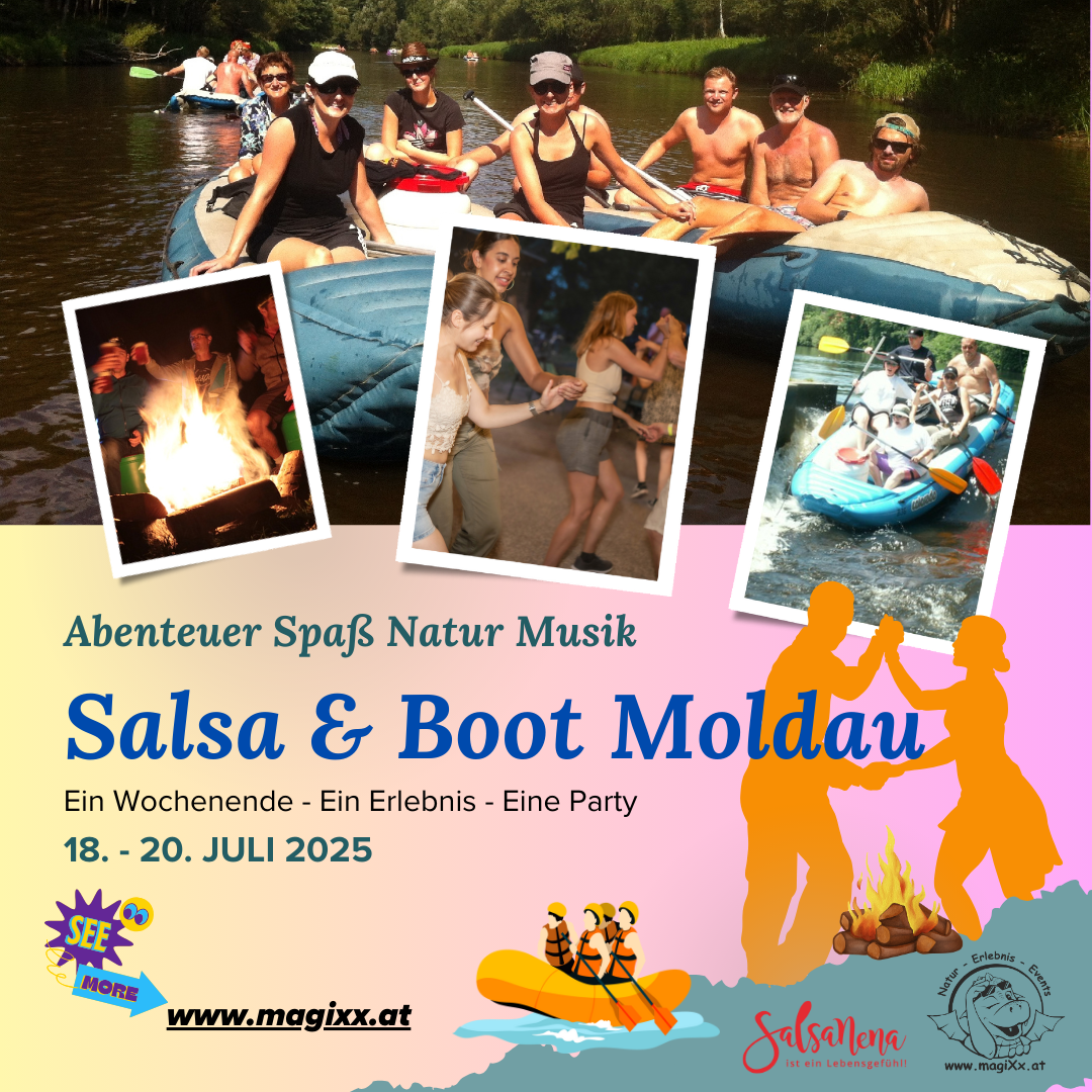 Beitrag Moldau Bootstouren 2025 (1) Veröffentlicht 2. April 2025 bei 1080 × 1080 in Salsa und Boot an der Moldau – Tanz, Spass, Genuss und Fluss – das Salsa Schlauchboot Wochenende – Sommer 2025 – abgesagt Teilen: Click to email a link to a friend (Opens in new window) E-Mail Click to share on Facebook (Opens in new window) Facebook Click to share on X (Opens in new window) X Weiter →