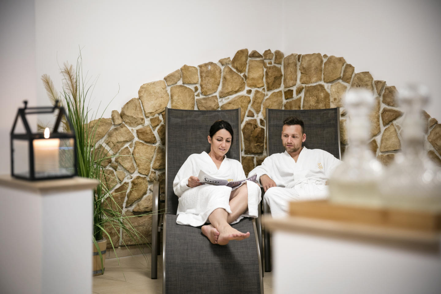 Sie sehen ein Paar im Wellnessbereich des JUFA Hotels Sigmundsberg. Der Ort für erholsamen Familienurlaub und einen unvergesslichen Winter- und Wanderurlaub.